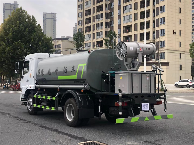 后灑、帶側(cè)噴(花灑)、帶后工作平臺(tái)、平臺(tái)上安裝綠化灑水高炮(炮噴射形狀可調(diào)節(jié):直沖、大雨、中雨、毛毛雨、