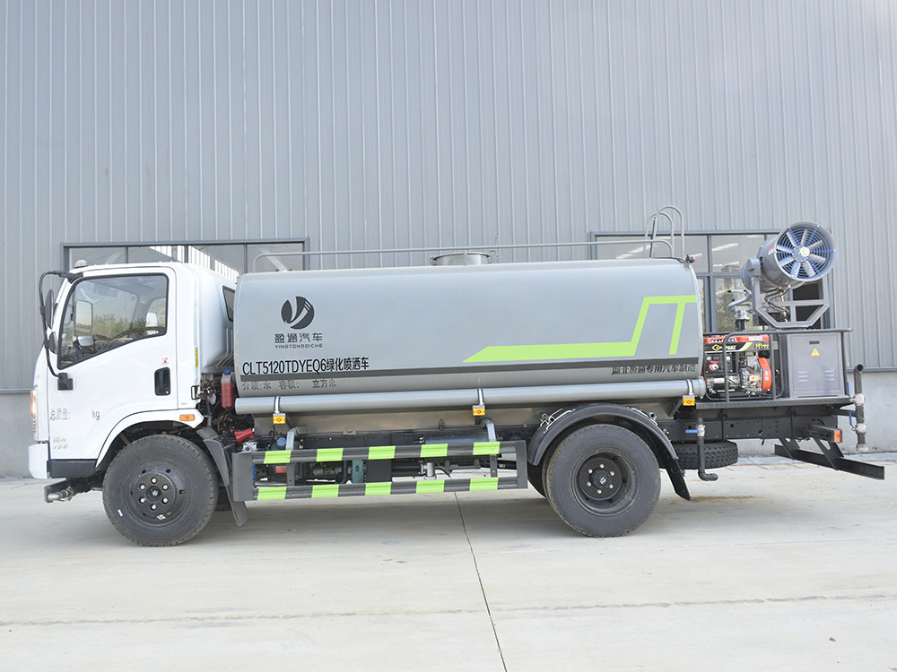 東風10方抑塵灑水車配置: 發動機云內 150 馬力(四缸),萬里揚 6 檔變速箱,前橋 2.2 噸, 后橋 4.2 噸,8.25 鋼絲胎,軸距 3800,斷氣剎,ABS,空調,電動玻璃, 中控鎖。2.上裝配置: 1、罐體約為 10 方,可加裝 30 型霧炮 2、邊燈帶電,罐體尾部上方標配 2 個紅色示寬燈, 3、標配前噴為鴨嘴直沖,標配后沖,用戶可根據自己的需求,來調 整對沖位置。 4、花紋防滑平臺,炮筒后蓋為定制型螺栓卡扣, 5、前噴、后沖、后灑、側噴,綠化高炮開關球閥均采用 50 大通經 不銹鋼球閥, 6、新式軸承式水炮,更加耐用, 7、40-50 型水泵, 8、防腐法蘭墊片, 9、鋁制后灑,不易炸開 10、罐體自動焊(美國林肯焊機及電源),拼板自動焊接,封頭環 縫焊接,無氣孔,焊縫美觀。 11、側護網、后保險杠、均為螺栓連接,方便拆卸,維修方便。 12、塑料擋泥板,替代鐵擋泥板,更加輕便,用螺栓連接,方便拆 卸。 13、前部、后部主管連接處為 6 孔圓法蘭,不易沖墊