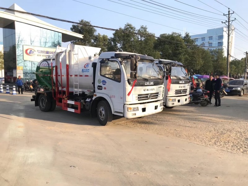 餐廚垃圾車可根據(jù)客戶對垃圾裝載量的不同要求選用類型不同的底盤,可裝載2-10噸垃圾的餐廚垃圾車,承載餐廚泔水容積為圓罐體(方形箱體),有效容積達到90%,罐體(或箱體)內(nèi)分上、下兩層,下層為固液分離后污水收集箱,污水箱兩頭高,中間低,最低端設有出水口,以保證污水排放干凈。