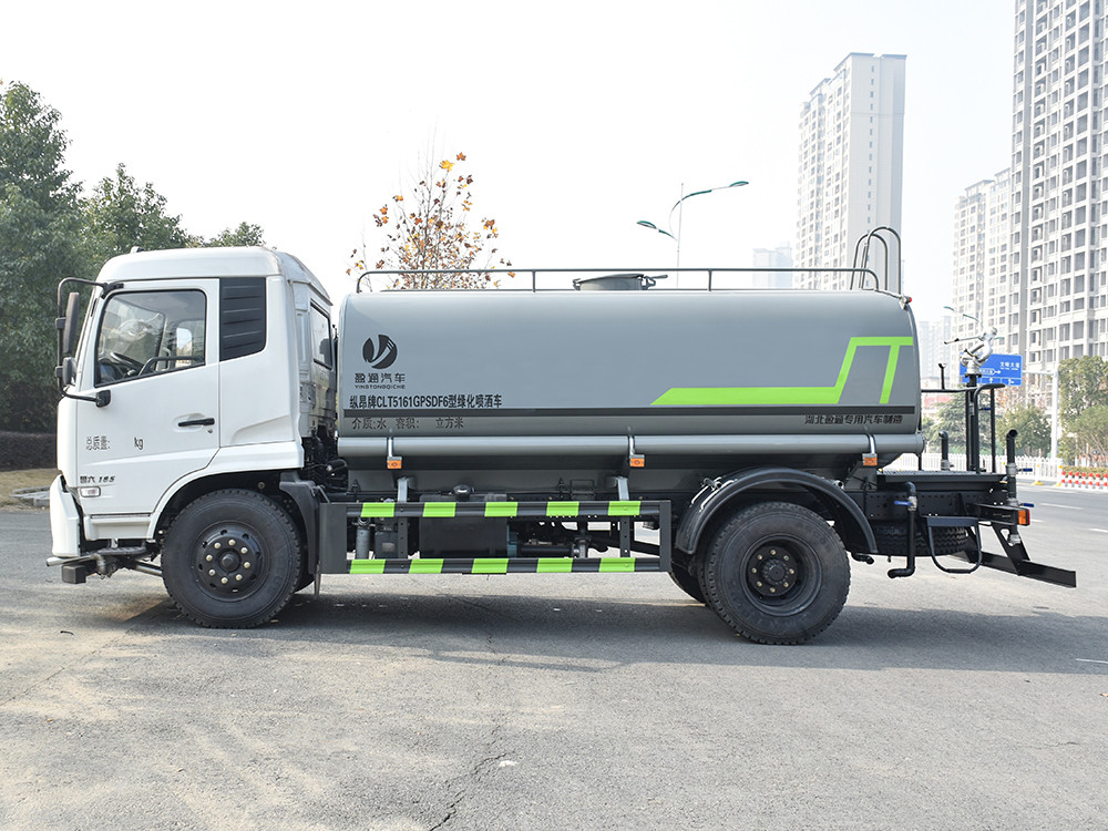 東風天錦12放灑水車標配前噴(鴨嘴)、后沖、后灑、側(cè)噴、后置式工作 平臺,平臺上配置綠化水炮(可 360°旋轉(zhuǎn),既可以調(diào)成柱狀,也可 以調(diào)成霧狀,更可以調(diào)成直沖狀、大雨、中雨、小雨、毛毛雨),配 備優(yōu)質(zhì)大功率專用灑水泵(可自吸自排,可從河里或池塘抽水到罐體), 取力器,雜物過濾網(wǎng),消防接口,自流球閥系統(tǒng)、取力器、球閥、濾網(wǎng) 均為國家標準產(chǎn)品,主管道加粗,法蘭墊、法蘭盤加厚,大通徑球閥。 整體具備性能優(yōu)良安全可靠、效率高、流量大、維修方便等特點。