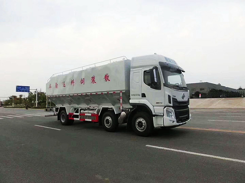 東風柳汽乘龍28方單橋散裝飼料運輸車,28立方14噸,玉柴6缸200馬力發動機,超強爆發力,法士特8檔變速箱帶高低檔,10.00鋼絲胎!