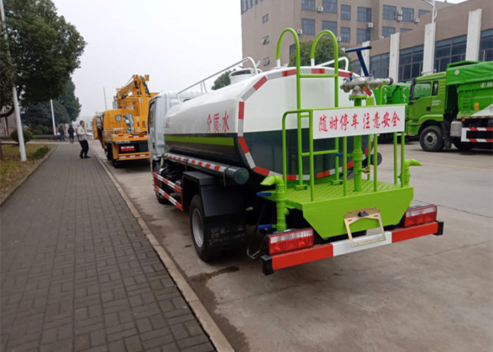 東風藍牌3噸灑水車上裝配置:罐體采用4mm厚武鋼集團供應的罐車專用板材制作,實際容積2立方,罐內防浪隔板具有防波作用,減低罐內液體的沖擊。配備65QZ-40/45型大功率灑水車專用水泵,可自吸自排,引水時間<8min,流量40m3/h,揚程45米。其它專用部分標配為:前沖、后灑、側噴、后工作平臺帶360度可調節綠化水炮,垂直吸程≧7米,灑水寬度≧14-16米,綠化水炮射程≧20-25米,自流閥、濾網、消防接口(可連接消防栓取水,可作應急消防用)。罐前量管(觀察罐內水位)、罐后爬梯、罐上罐口帶簡易護欄、罐側雙炮筒,罐體表面雙層油漆工藝,防銹、耐腐蝕,其余有廠家標配。可選擇加裝加裝藥盤、氣動控制閥、噴藥設備、罐內防腐等。