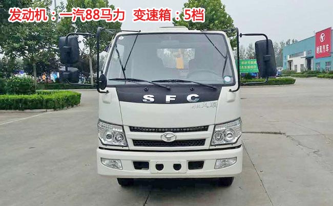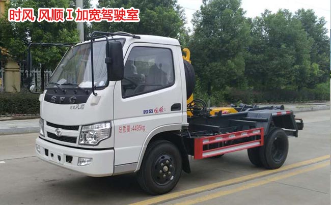 時(shí)風(fēng)風(fēng)順勾臂式垃圾車(chē),風(fēng)順Ⅰ加寬?cǎi){駛室,一汽88馬力發(fā)動(dòng)機(jī),5檔變速箱,軸距2.7米,6.50-16輪胎,帶方向助力、ABS,油剎。