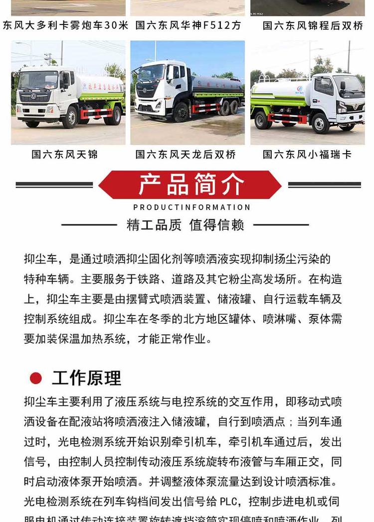 4、霧化噴嘴:產品罐體后補安裝有萬向霧化噴嘴,噴嘴角度可以調節,主要用于公路、工廠抑塵及降塵。