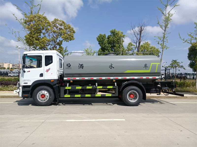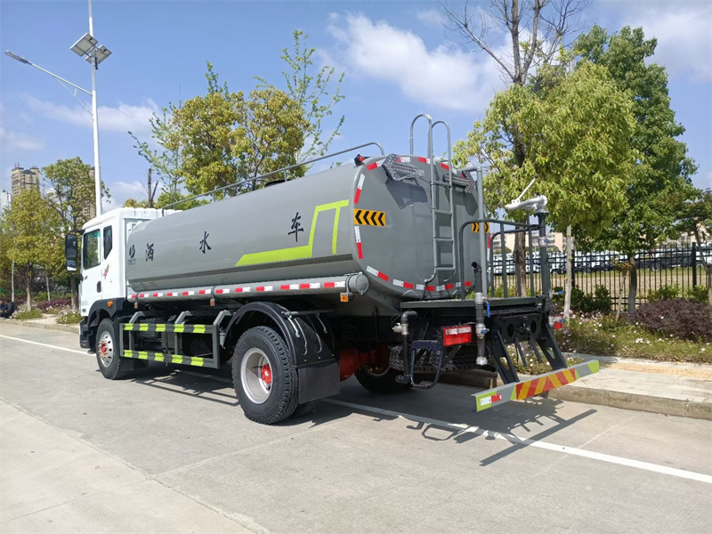 東風12方灑水車標配前噴(鴨嘴)、后沖、后灑、側噴、后置式工作 平臺,平臺上配置綠化水炮(可 360°旋轉,既可以調成柱狀,也可 以調成霧狀,更可以調成直沖狀、大雨、中雨、小雨、毛毛雨),配 備優質大功率專用灑水泵(可自吸自排,可從河里或池塘抽水到罐體), 取力器,雜物過濾網,消防接口,自流球閥系統、取力器、球閥、濾網 均為國家標準產品