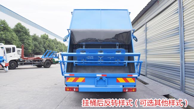 垃圾車改裝配置:有效壓縮容積12立方,可裝10噸生活垃圾,通過液壓系統設計實現雙向垃圾壓縮功能,壓縮倍率3-4倍,生活垃圾經壓縮后可達600-800kg/m3;手動+電控雙操控,控制方式為一體多位,駕駛室內、車身中測、后尾部均可操作;具有工作裝置緊急制動停止按鈕;垃圾箱體采用新款框架設計,美觀大方,結構性能強,有效容積大;設有專用污水收集箱,壓縮過程中污水直接進入污水箱,有效防止污水排泄導致二次污染。