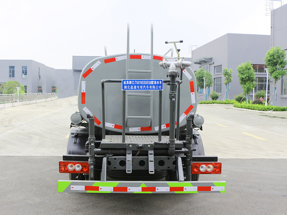 承德灑水車產品主要技術參數 序號 名稱 型號、規格 1 整車型號 CLT5070GSSEQ6 型灑水車 2 發動機型號 Q28-130C60 3 發動機馬力/功率 全柴 130 馬力/96KW 4 發動機排量 2800ML 5 變速箱 法士特 5 檔 6 輪胎規格 7.00 鋼絲胎 7 軸距 3360 8 總質量 7360KG 9 整備質量 3220KG 10 額定載質量 3945KG 11 整車尺寸(長×寬×高) 6.25*1.98*2.4 12 罐體容積 5 方 13 燃料種類 柴油 14 排放標準 國六 15 水泵型號 40/50 16 罐體材質 Q235 碳鋼