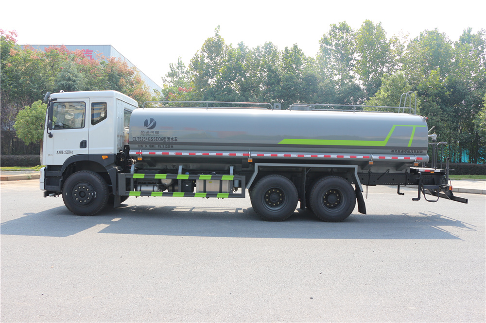 東風T5底盤后雙橋19噸灑水車采用優勢武鋼產碳鋼板制作,水壓封頭自動焊接,內部2-5道防浪沖擊板,配品牌大功率灑水泵,流量30-60噸每小時,壓力大流量強,帶樹脂透明液壓計,管道采用無縫鍍鋅鋼板連接,閥門采用鋁合金和不銹鋼材質,2道防銹底漆2道面漆,面漆采用烤漆工藝,整車采用流水線式生產模式,模塊化批量化生產工藝。