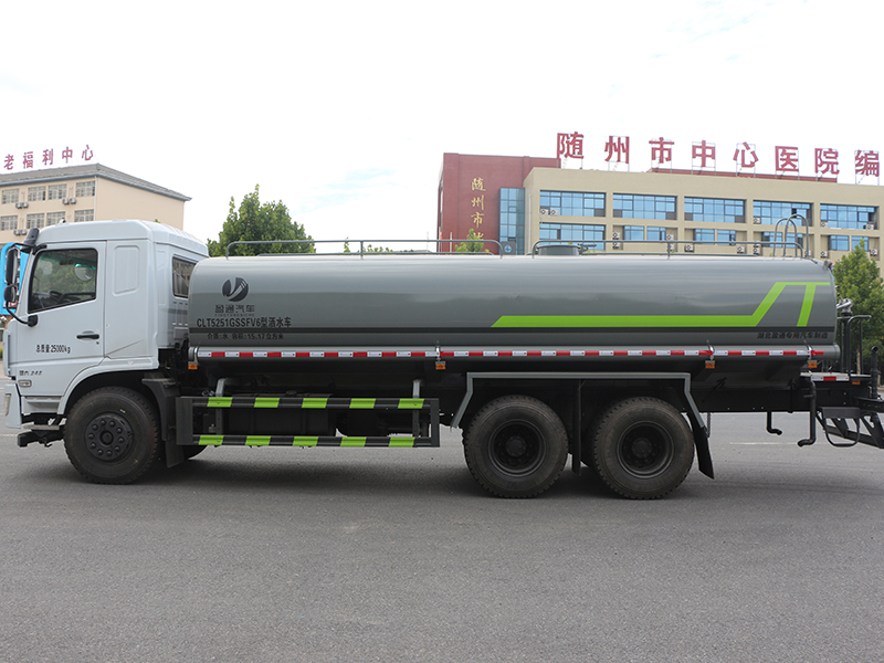 標(biāo)準(zhǔn)配置灑水車主要裝備有:前沖(沖洗公路路面)、后灑(公路路面養(yǎng)護(hù))、側(cè)噴、高位側(cè)花灑(路邊綠化帶優(yōu)化);后工作平臺(tái)高壓水炮,可調(diào)節(jié)成柱狀,射程≥28m;也可調(diào)節(jié)成霧狀,射程≥30米,水泵自吸高度:≤7m,灑水寬度:≥15m。側(cè)防護(hù)網(wǎng),自流閥,消防接頭。灑水車水泵為常壓水泵,功能可以抽水、排水。另外根據(jù)用戶要求,可加消防泵、噴霧機(jī)、農(nóng)藥卷盤(pán)、農(nóng)藥柱塞泵。罐內(nèi)可以做防腐防銹、電磁閥氣動(dòng)閥自動(dòng)放水等****,以滿足不同用戶需求。