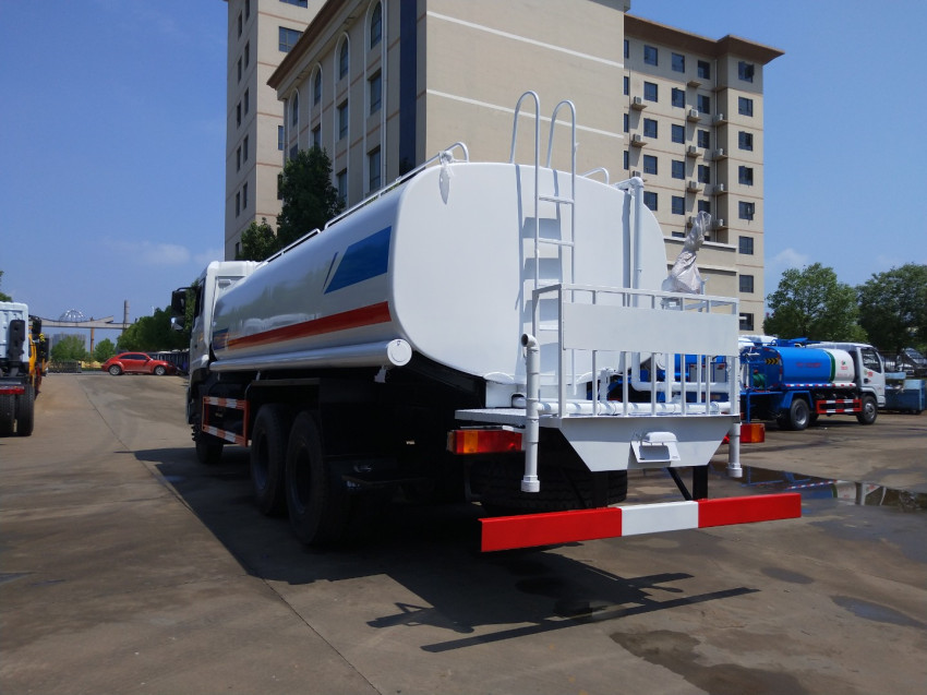 罐體采用碳鋼優質鋼材制作。專用功能為:前沖后灑,帶側噴,罐體后帶工作平臺,平臺上安裝綠化灑水高炮,炮可噴灑農藥,并有多種雨狀可調節(大雨、中雨、毛毛雨、霧狀),配備大功率專用灑水泵,泵可自吸自排,帶自流閥,帶消防接頭,帶過濾裝置。其它嚴格按國家公告標準生產。