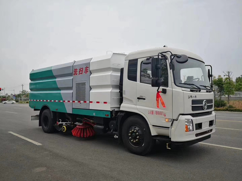 洗掃車具有路面清洗、路面清掃 路緣和路緣石立面洗刷、低壓沖洗、噴霧除塵等多功能。有“全洗掃”、 “左洗掃”、 “右洗掃”、 “全掃”、 多種作業模式可選擇。選擇“全洗掃”模式清洗廣場和路面,清洗效率高效果好,洗凈率達95%以上。選擇“左洗掃”或“右洗掃”模式清洗路面和路緣 。需要進行路面清掃或路面保潔作業時,可選擇掃路模式。需要噴霧除塵時,可開啟噴霧裝置,進行噴霧除塵作業。可以像灑水車一樣對路面進行低壓沖洗作業。