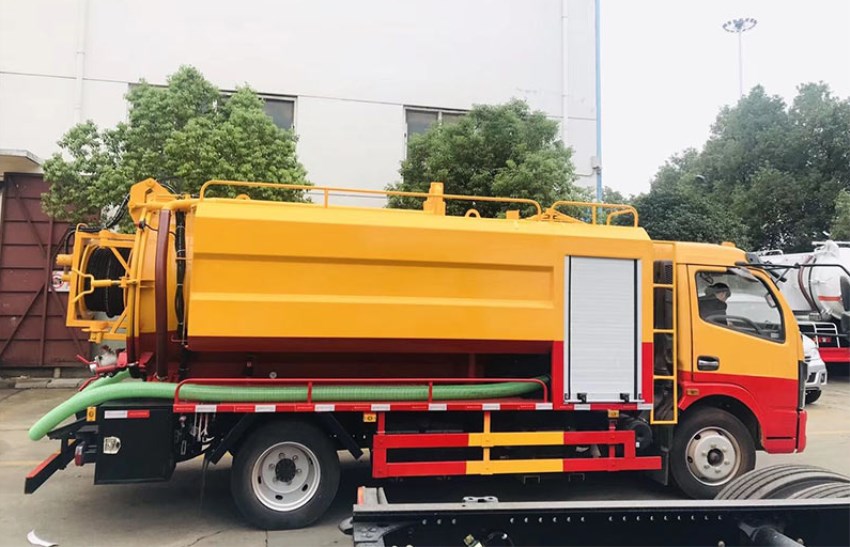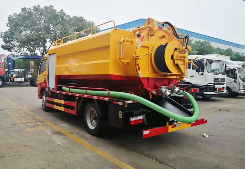 東風大多利卡D7新款駕駛室,底盤型號:EQ1110SJ8BDC 廣西玉柴150馬力渦輪增壓,5.5噸后橋,8.25R16鋼絲胎,雙層大梁,斷氣剎,帶空調 ,ABS,6檔變速箱。吸污罐:7立方,罐體6毫米碳鋼,吸污部分:配SK-9水循環泵,(選裝SK-12水循環泵)進氣管加過濾網,防溢閥加高,兩根8米吸污管,后蓋4個卡扣鎖緊,后視糞窗,后部150mm的球閥和100mm的球閥均帶出口,吸污罐體和清洗罐體外互通。右后邊150mm排污口帶球閥。清洗水罐3立方,4毫米碳鋼,右側消防進水,氣控推水,帶過濾網,采用天津通潔高壓清洗泵,24兆帕,170升流量,選裝215L流量,22兆帕高壓泵,標配60米內徑19#高壓管,組合噴頭一套,罐體兩邊為平臺,后背700mm高壓清洗卷盤,后部左右后一個示寬燈,整車工程黃, 其它標準配置。
