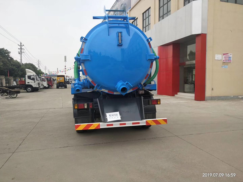 福田8噸吸污車該車用途為吸污,主要裝置為污罐;罐體有效容積:7.28立方米,運輸品名:液態污物,罐體尺寸(mm): 直段長4100,直徑1500;防護材料:Q235A碳鋼 ,連接方式:左右側面及后下部防護均采用焊接連接,后部防護斷面尺寸(mm):150×50,后部防護離地高度(mm):480. 整車長/軸距對應關系為(mm):6950/3800,7350/4200;ABS控制方式為4S/4M,ABS型號為CM4XL-4S/4M, 生產廠家為廣州瑞立科密汽車電子股份有限公司;選裝車輛后部圖片. |